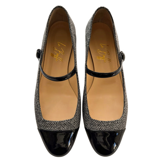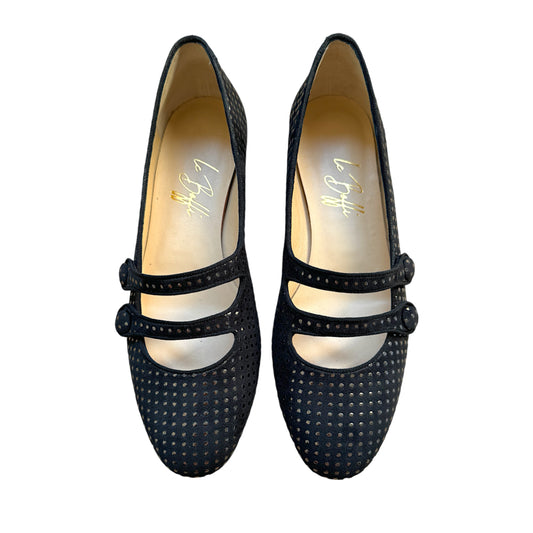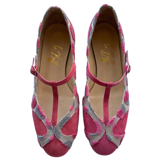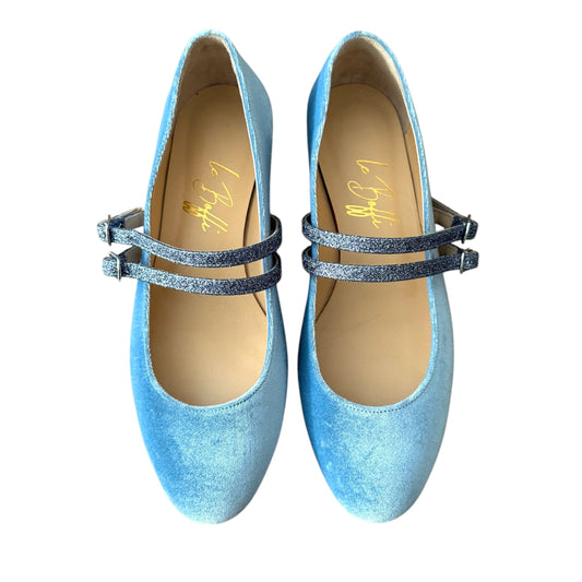 Elisa round ballerina in light blue velvet and anthracite glitter