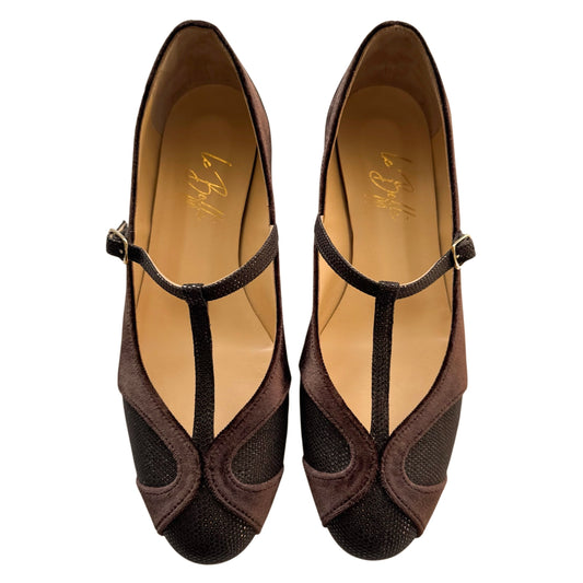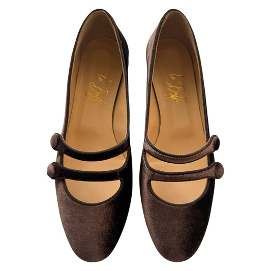 Vittoria tonda in tessuto pois marrone e velluto marrone