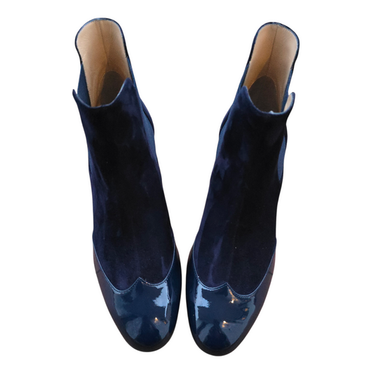 Emma ballerina Round Toe in red velvet and patent leather