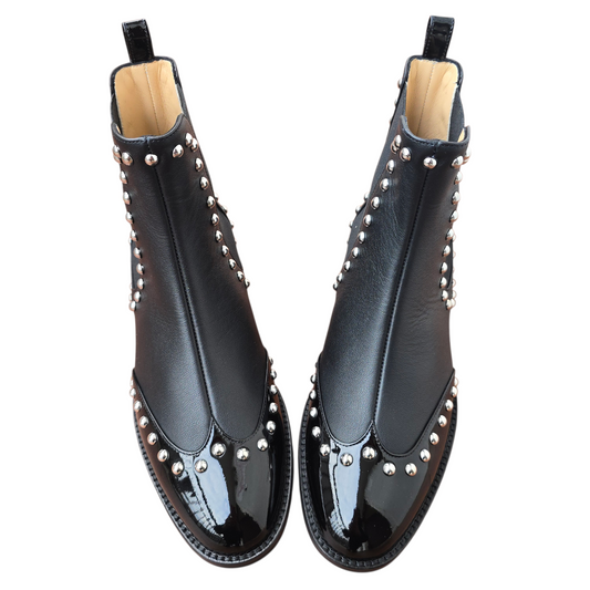 Emma ballerina Round Toe in red velvet and patent leather