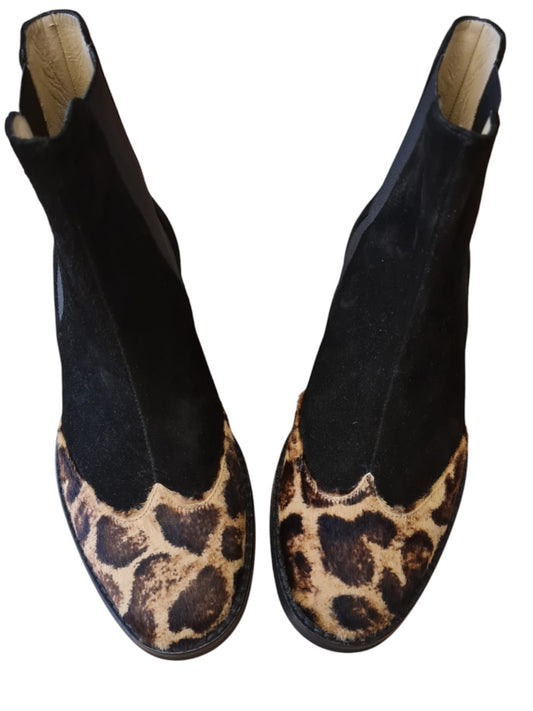 Allegra stivaletto in camoscio nero e cavallino giraffa naturale