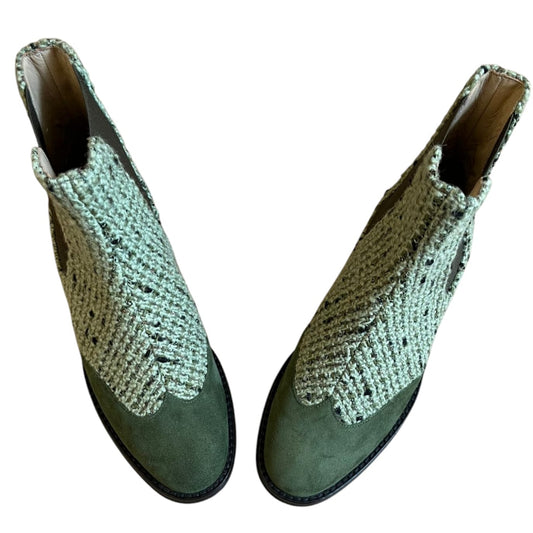 Allegra stivaletto in bouclé e camoscio verde salvia