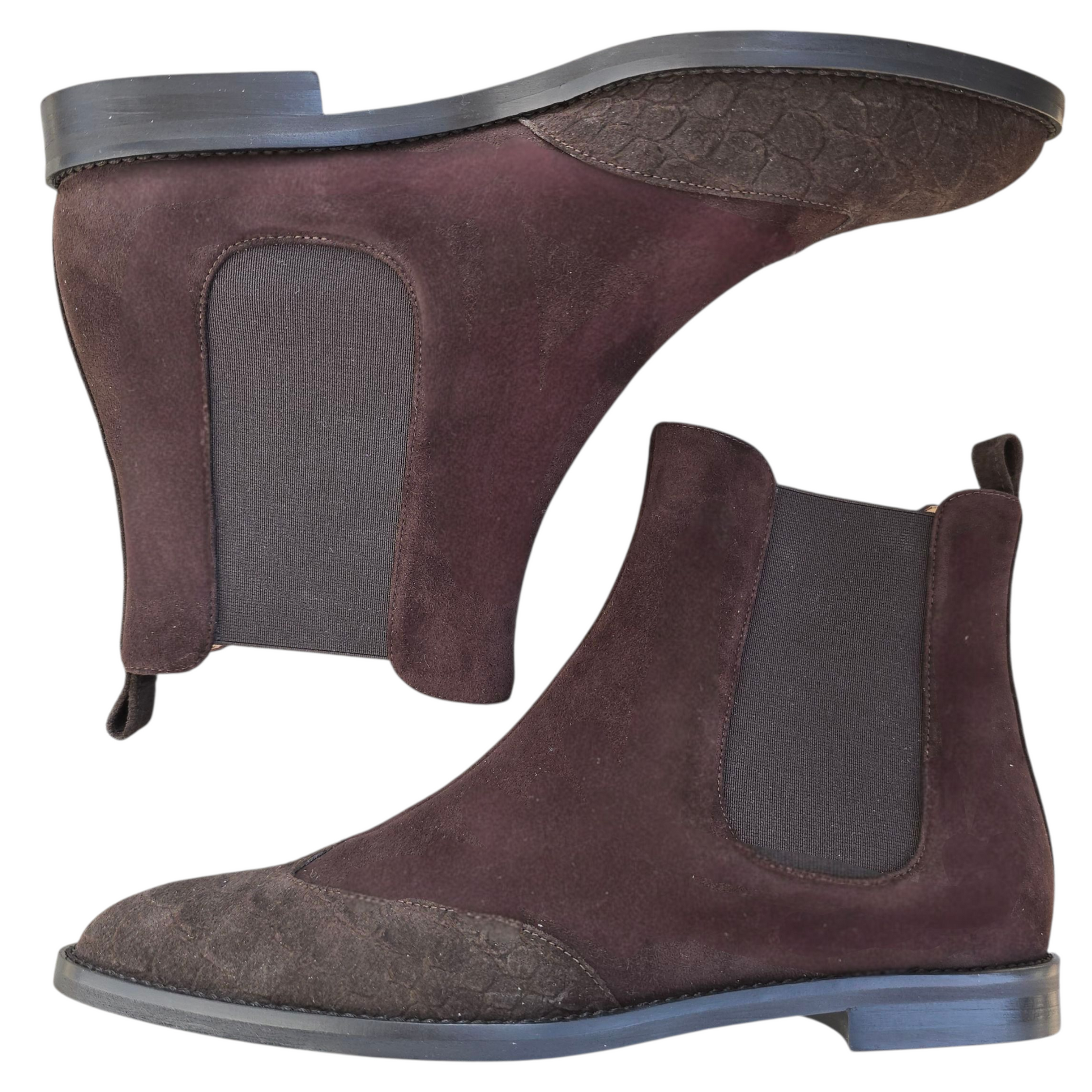 Beatles con suola in gomma ed elastico laterale in camoscio marrone con punta in camoscio stampa cocco marrone