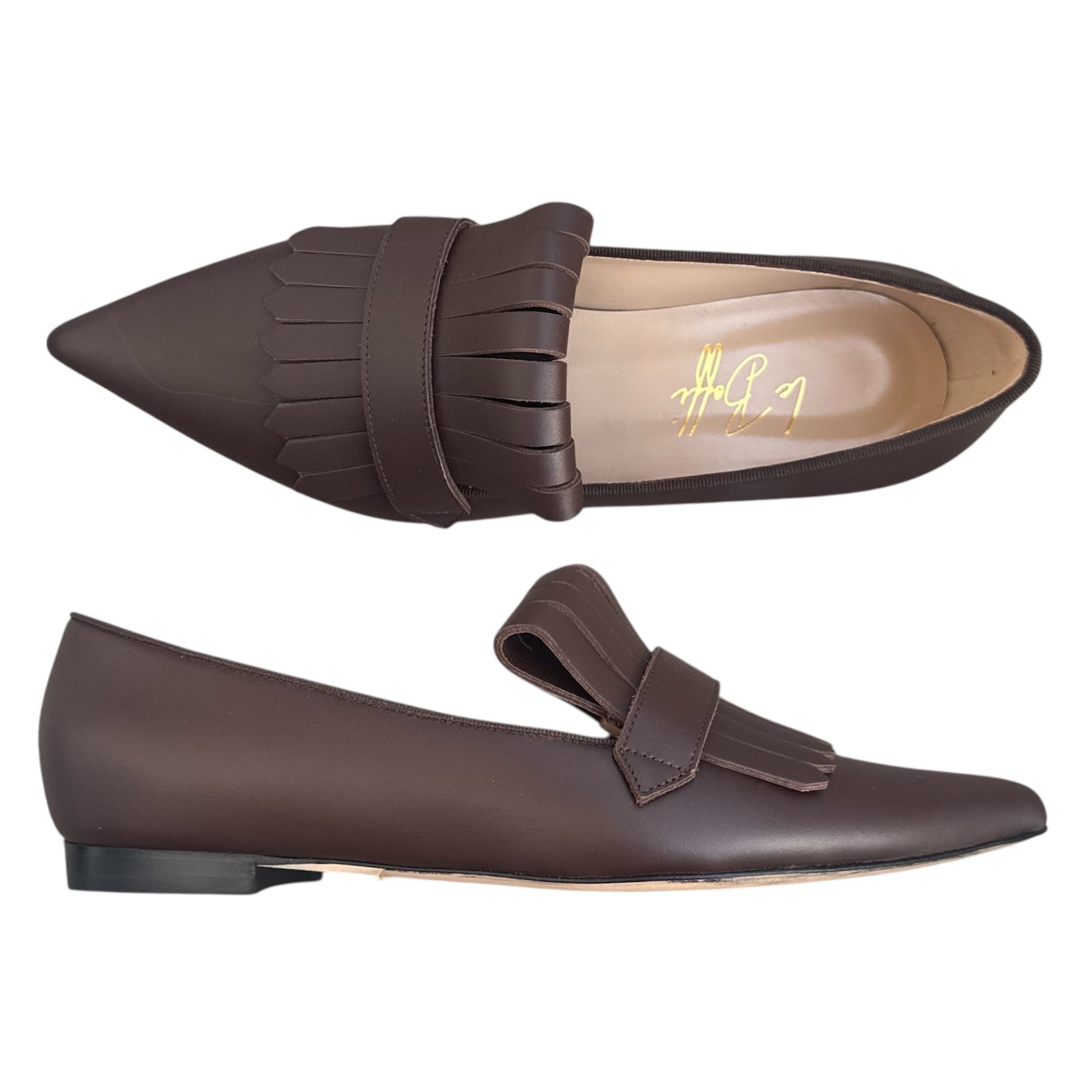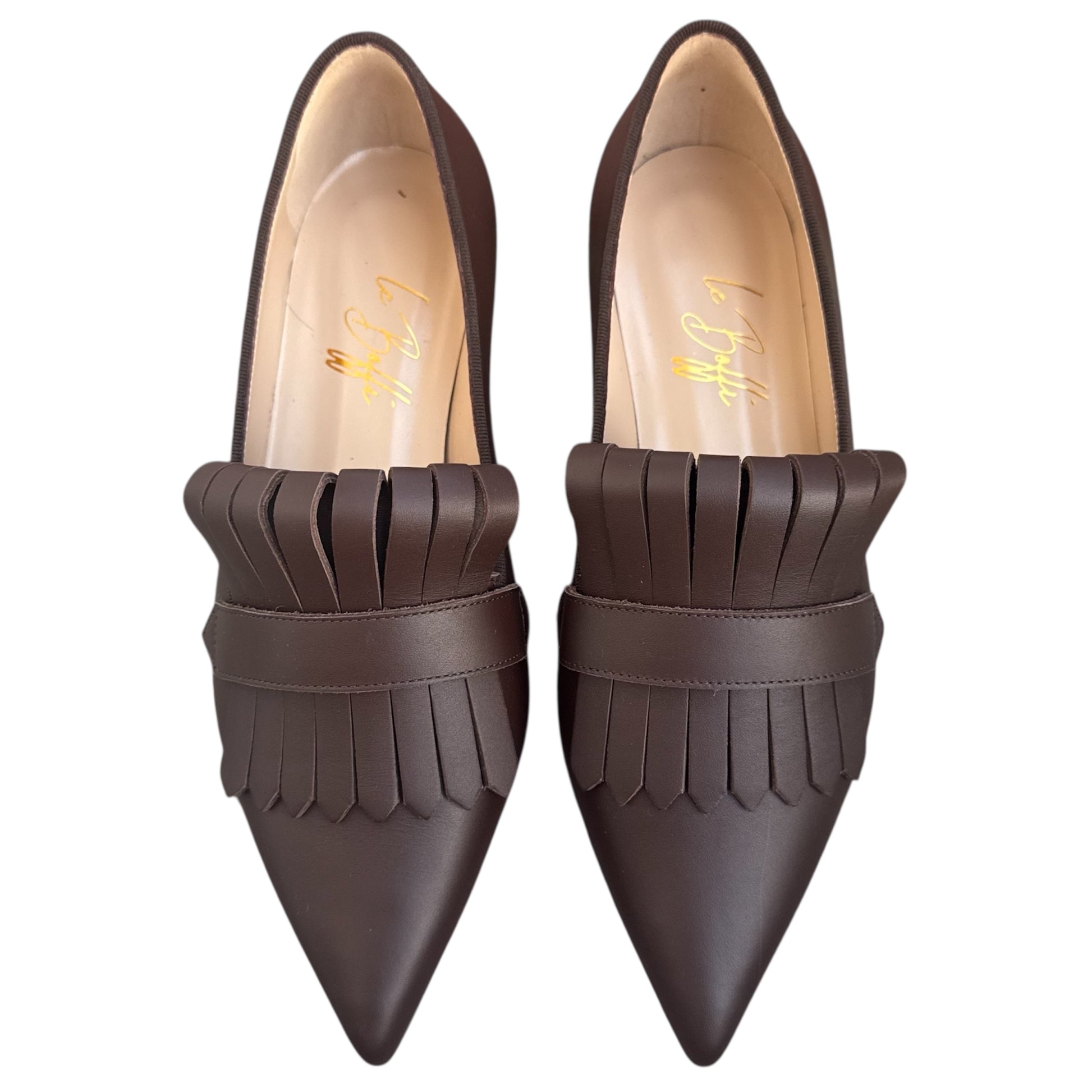 Mocassino a punta con frangia in pelle marrone