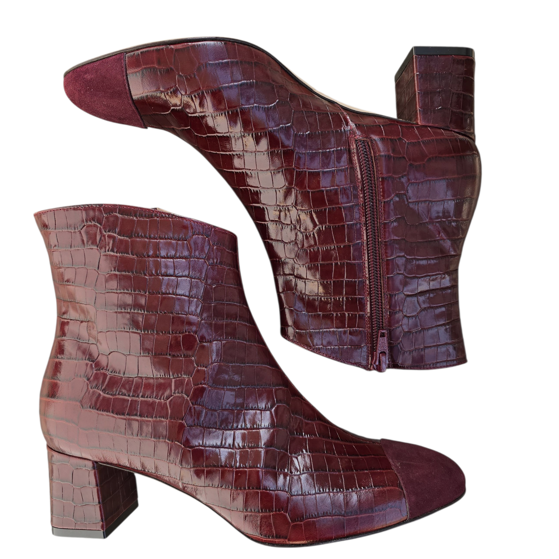 Tronchetto a punta tonda in cocco e camoscio bordeaux