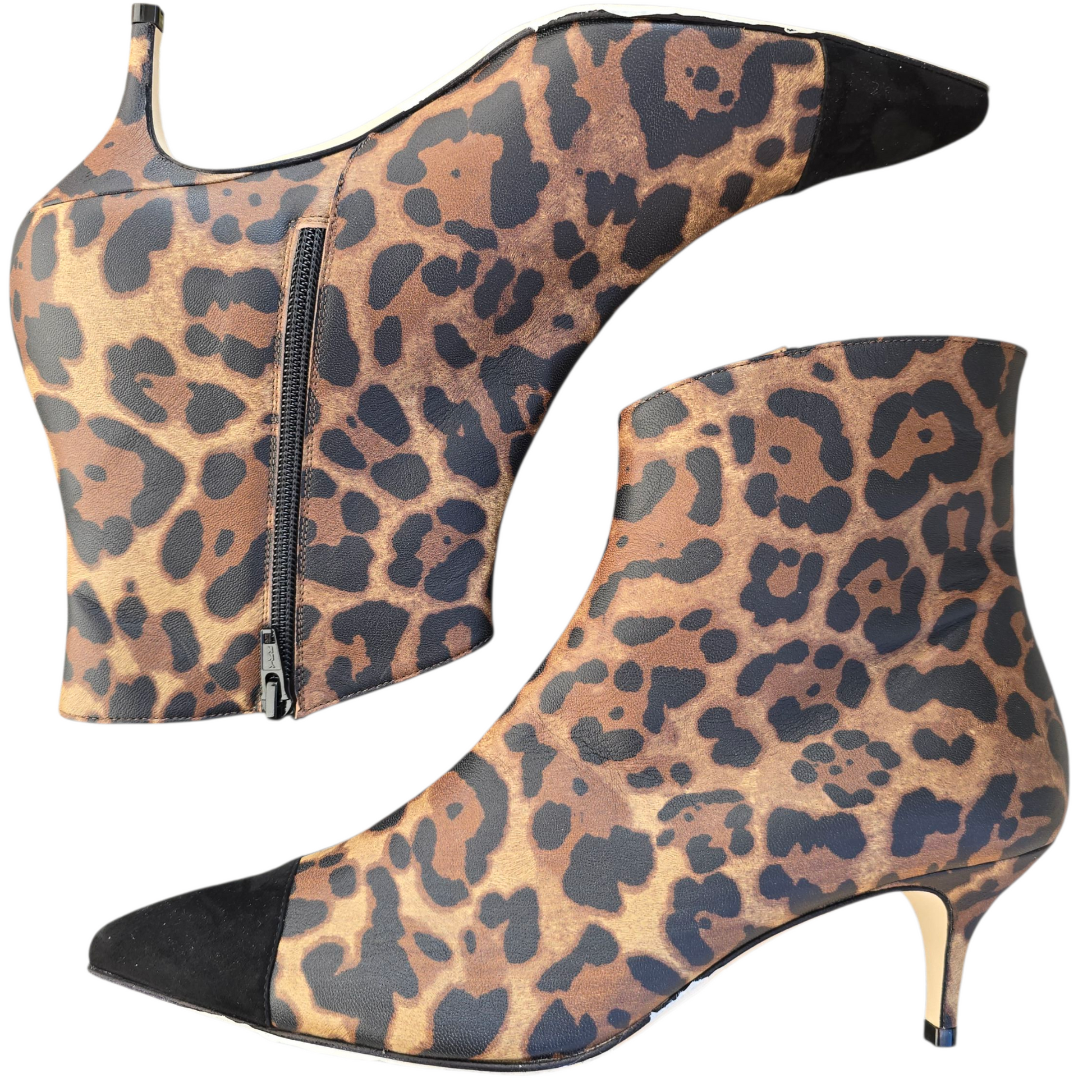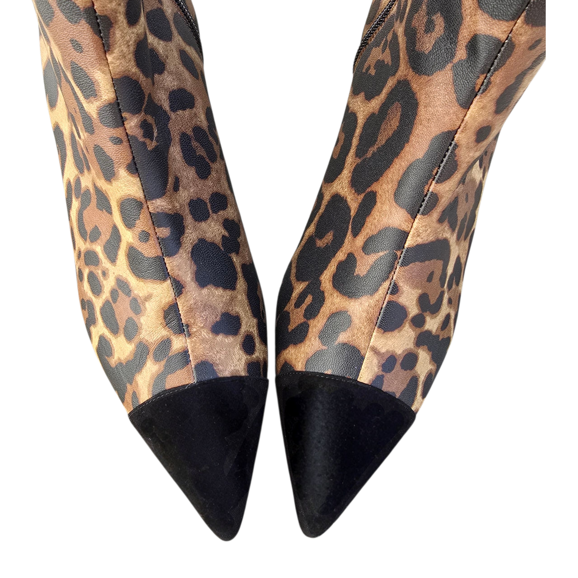 Tronchetto a punta in pelle stampa maculata con punta in camoscio nero