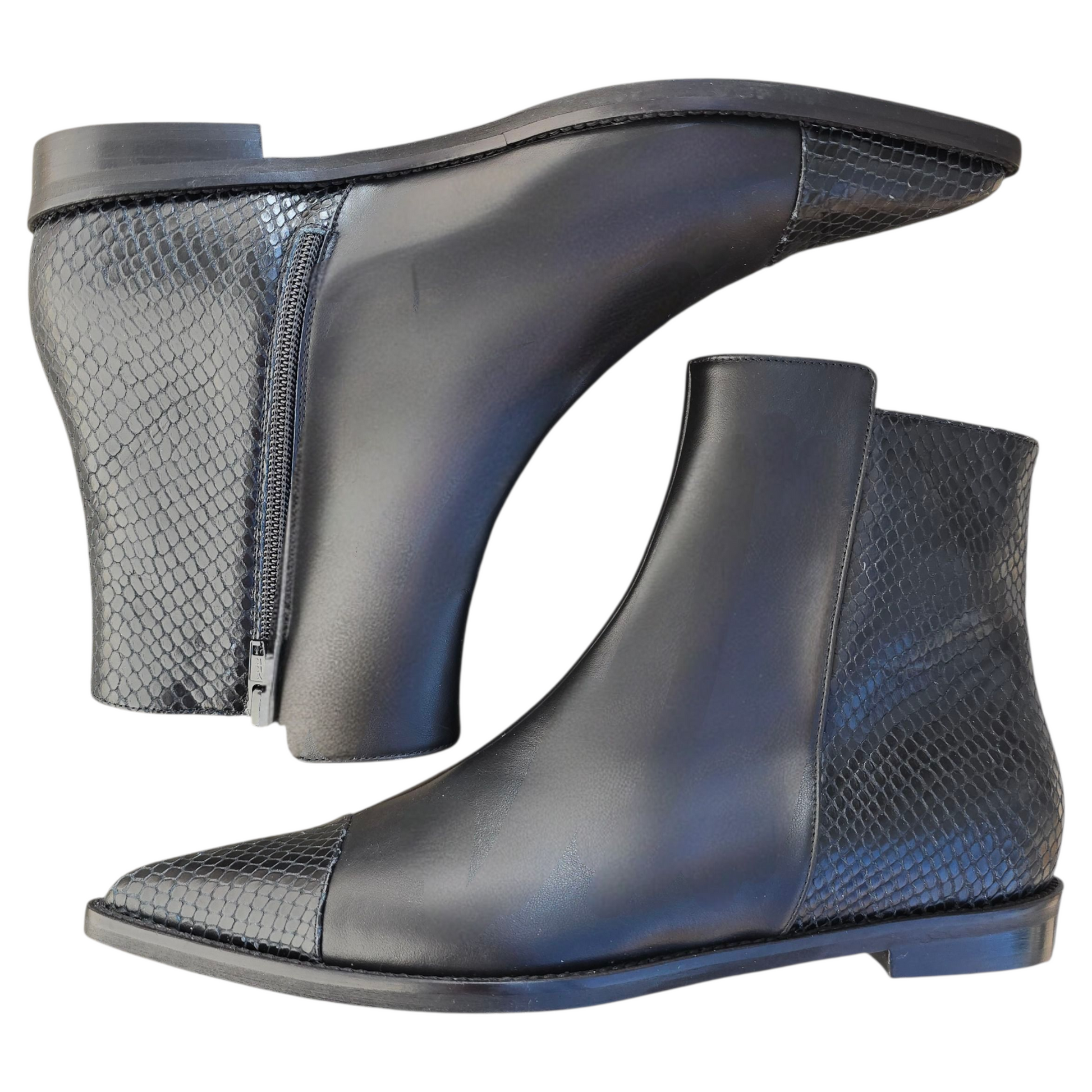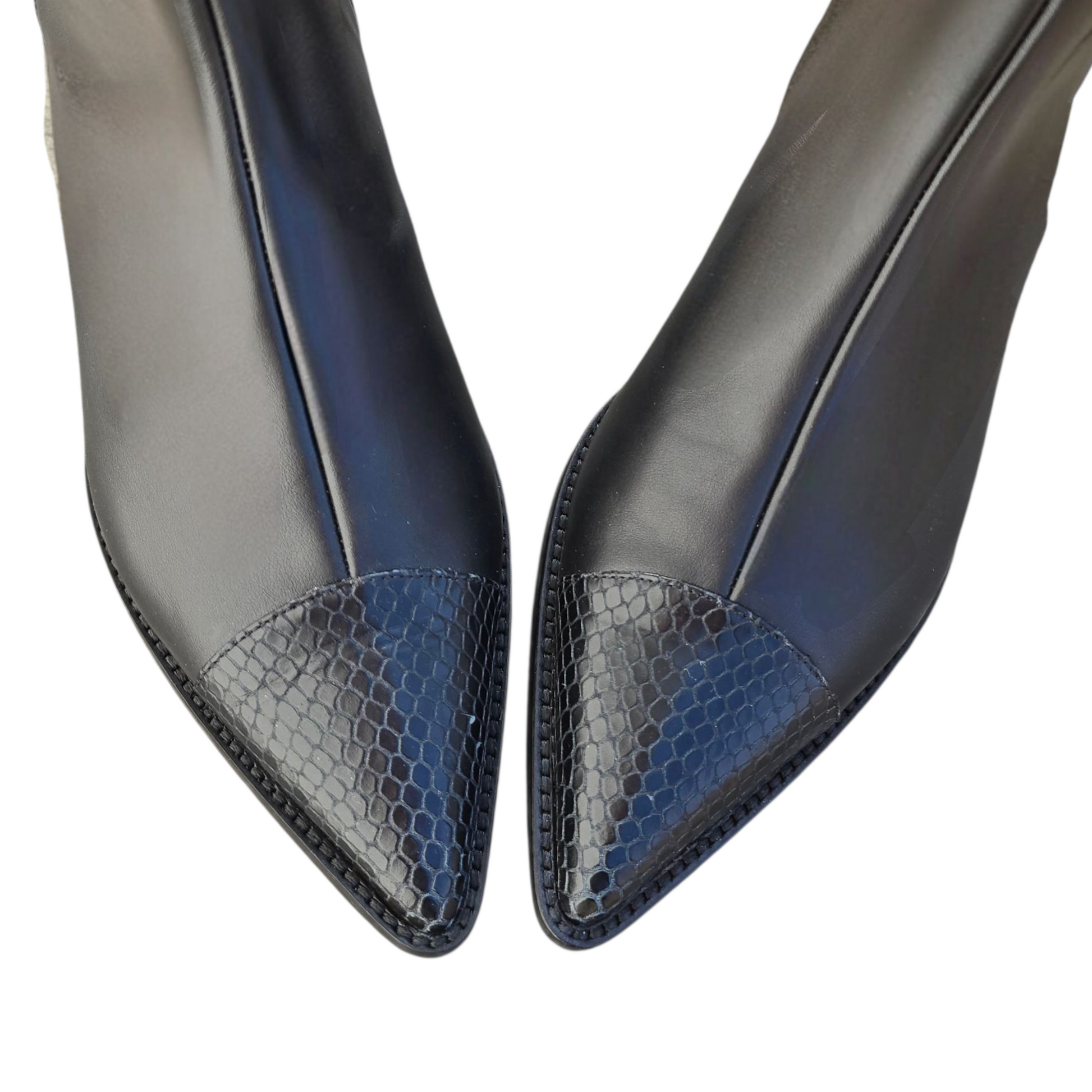 Stivaletto flat a punta con suola in gomma in pelle nera con punta e retro in pelle stampa serpente nera