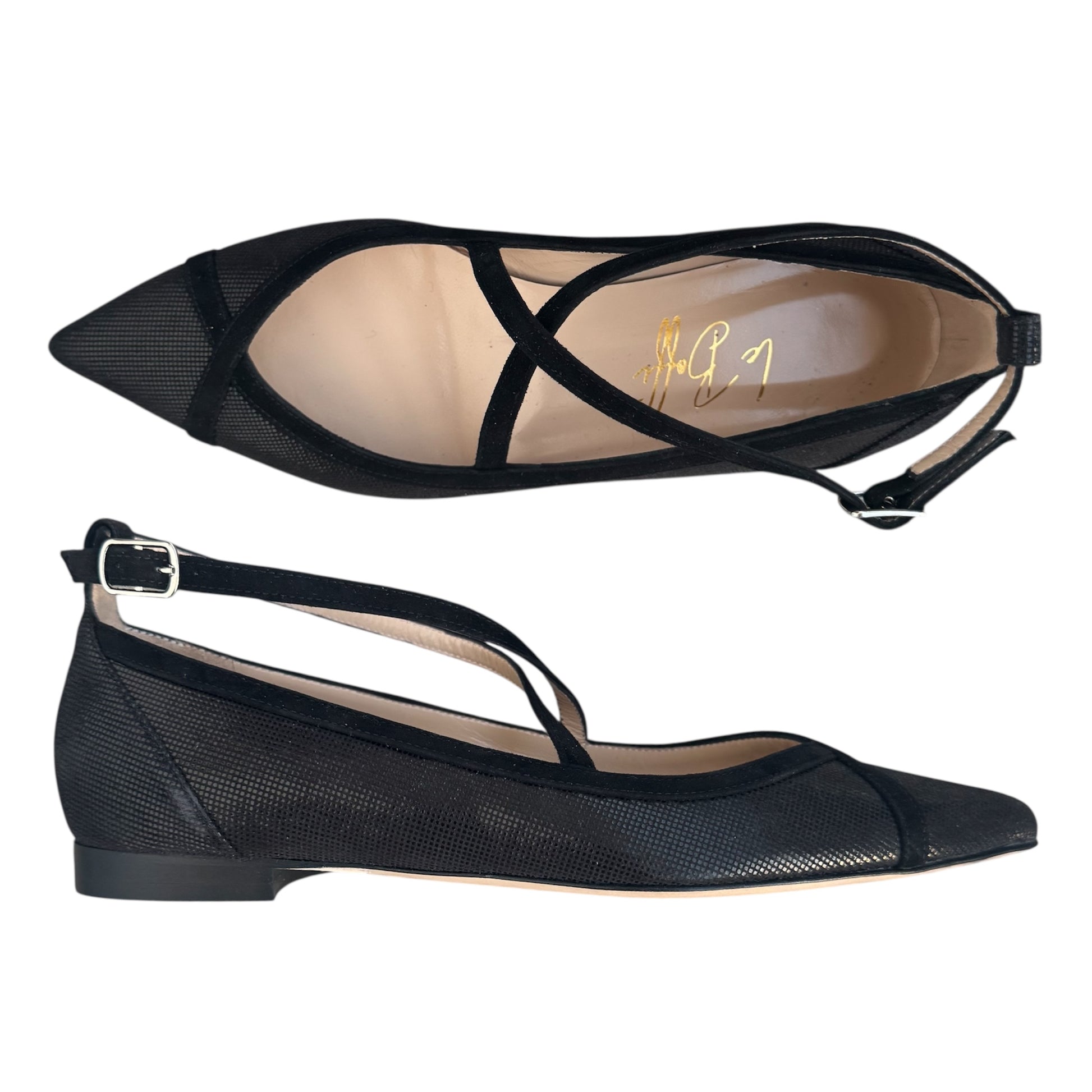 Ballerina in pelle laminata quadri e dettagli in camoscio nero