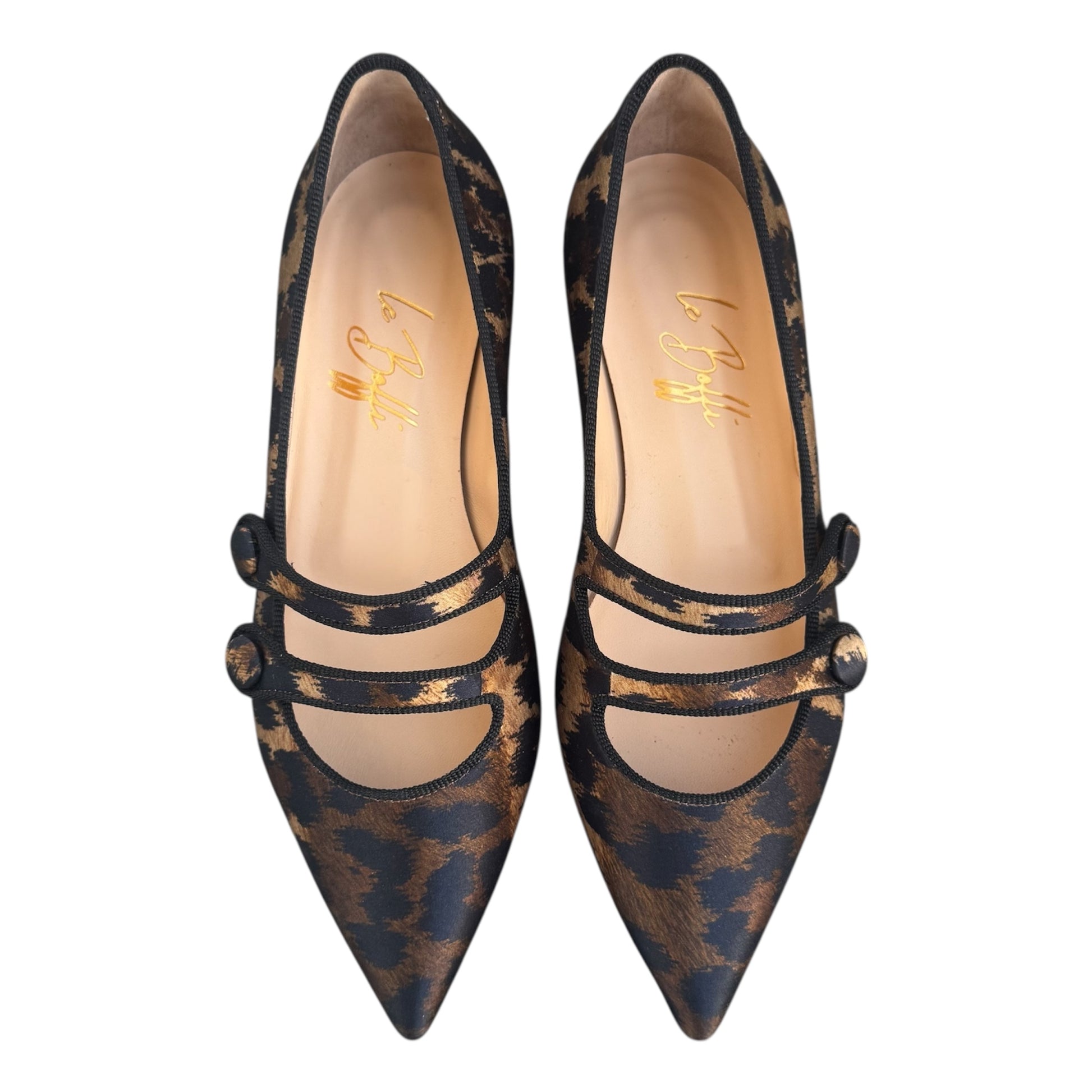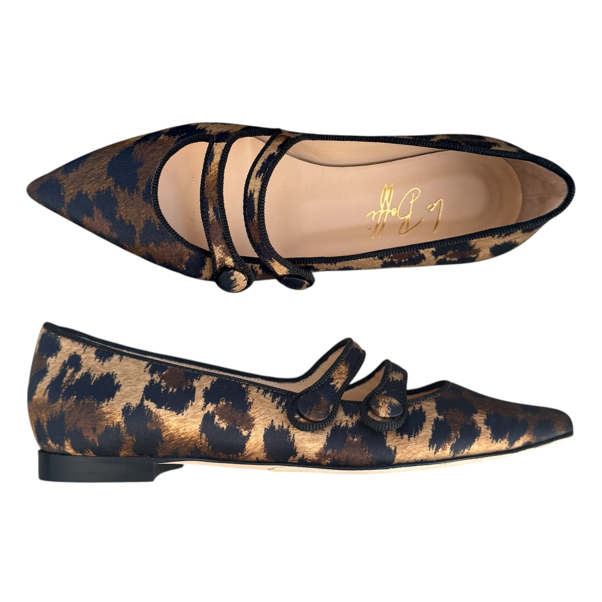 Ballerina con doppio listino in raso stampa Leopard