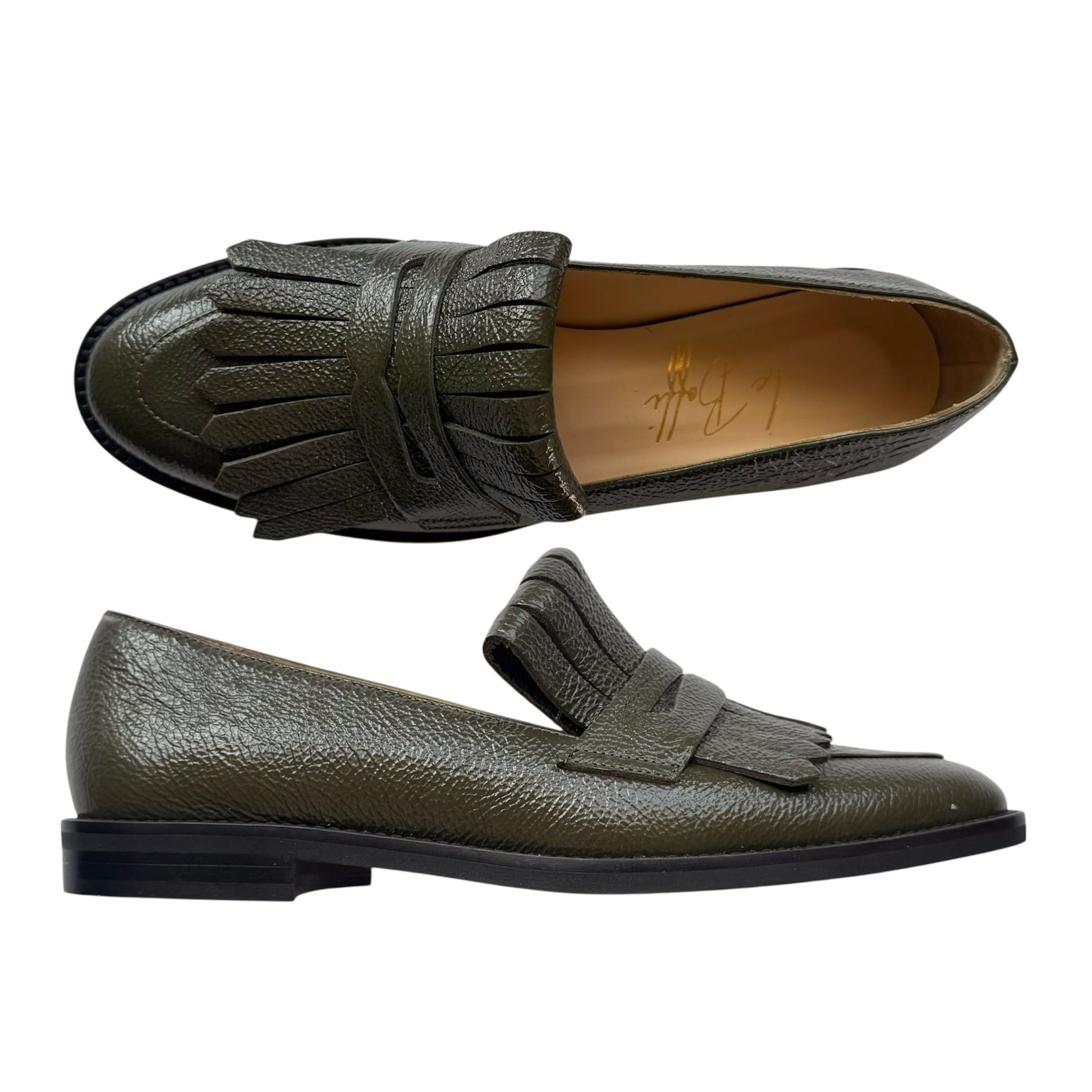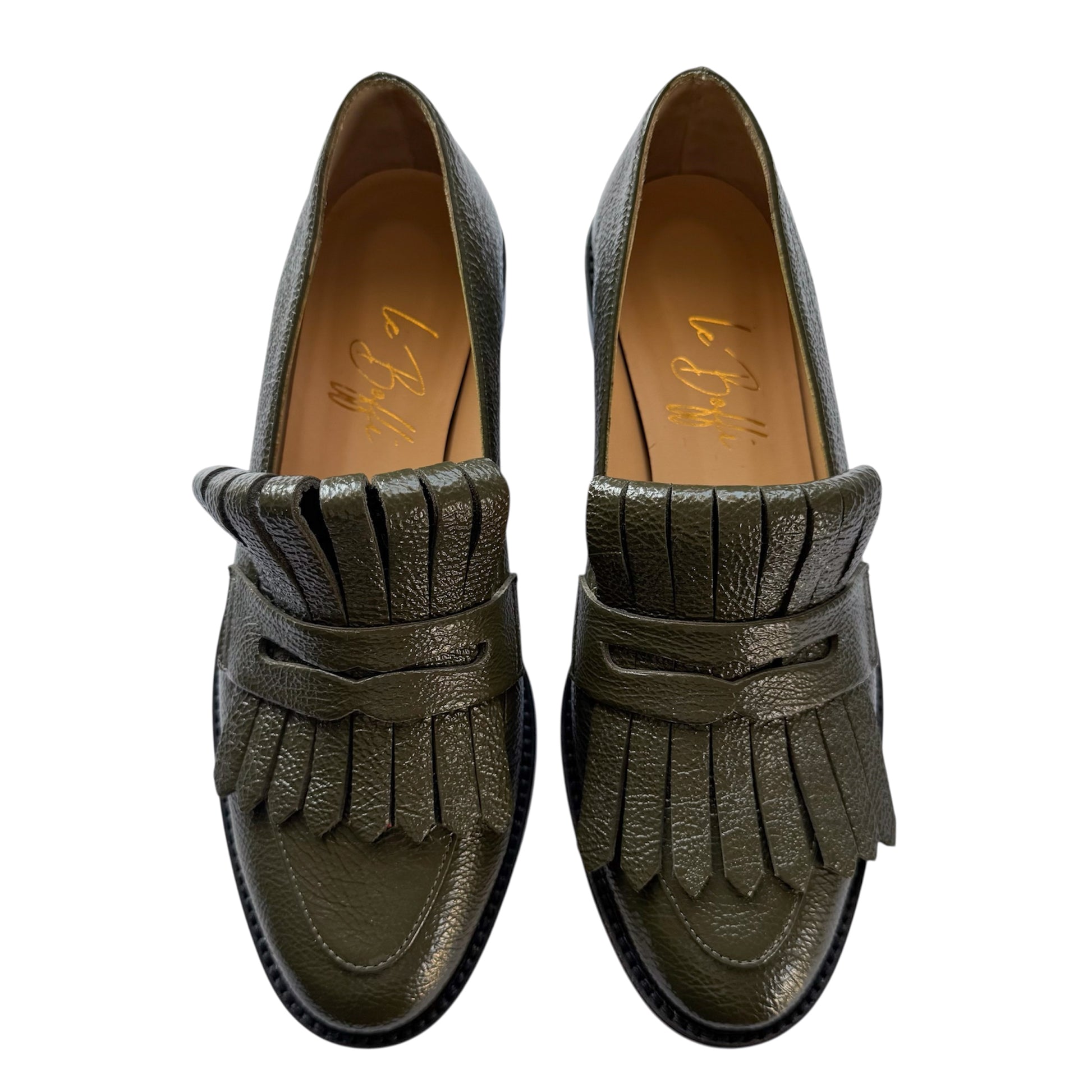 Mocassino con suola in gomma in pelle verde militare stropicciata