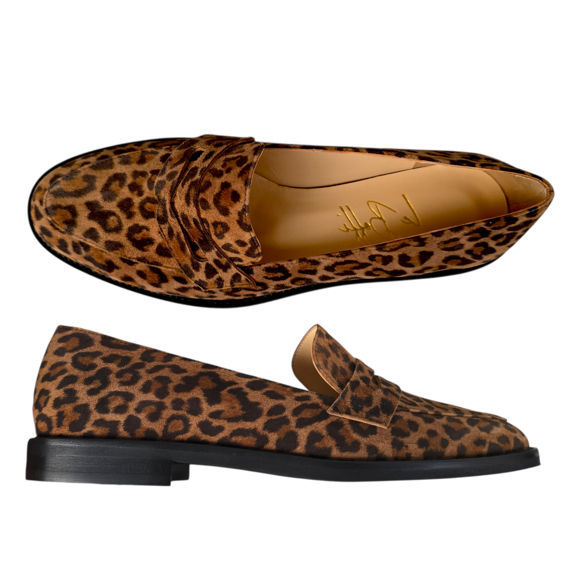Mocassino con suola in gomma in camoscio stampa leopardo