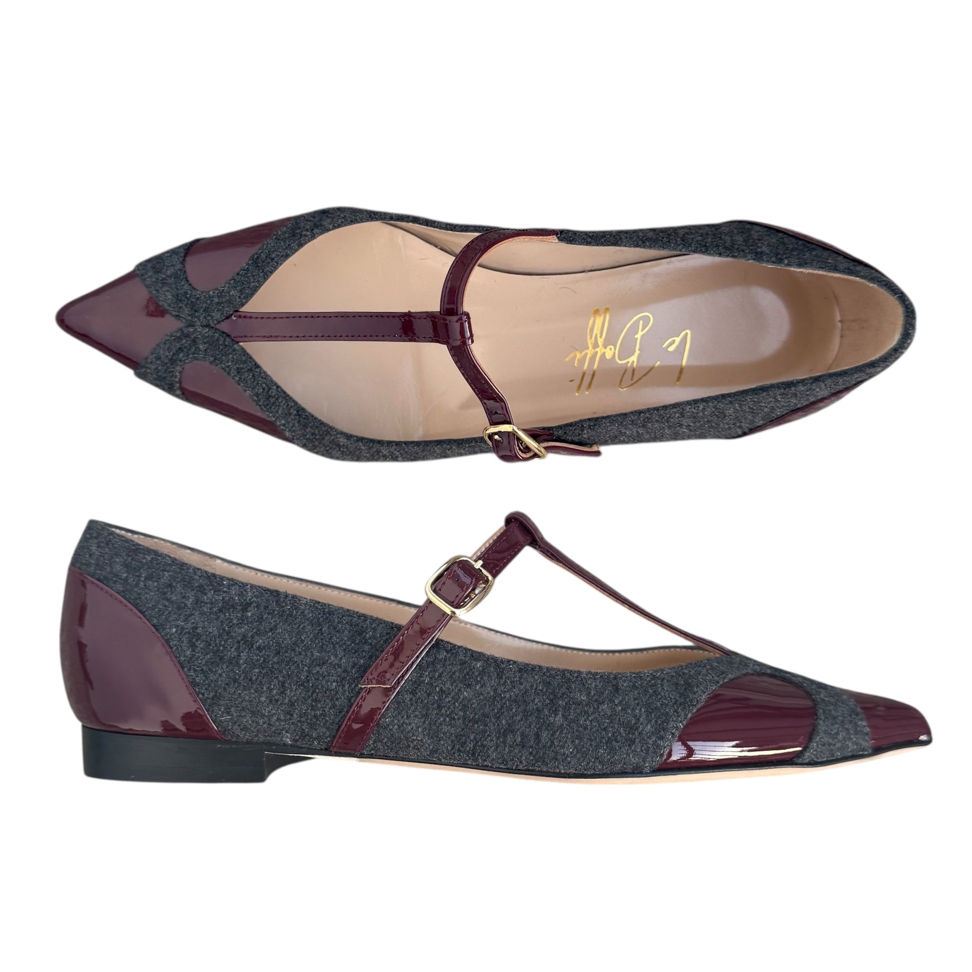 Ballerina bicolore in lana grigia e vernice bordeaux