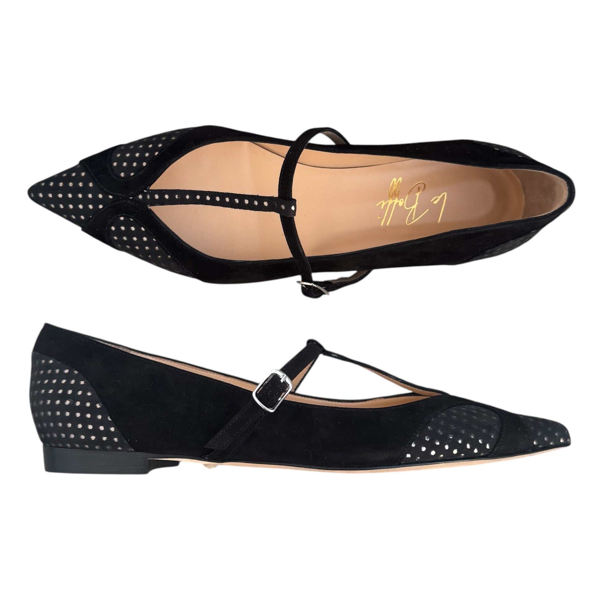 Ballerina in tessuto con microborchie e camoscio nero