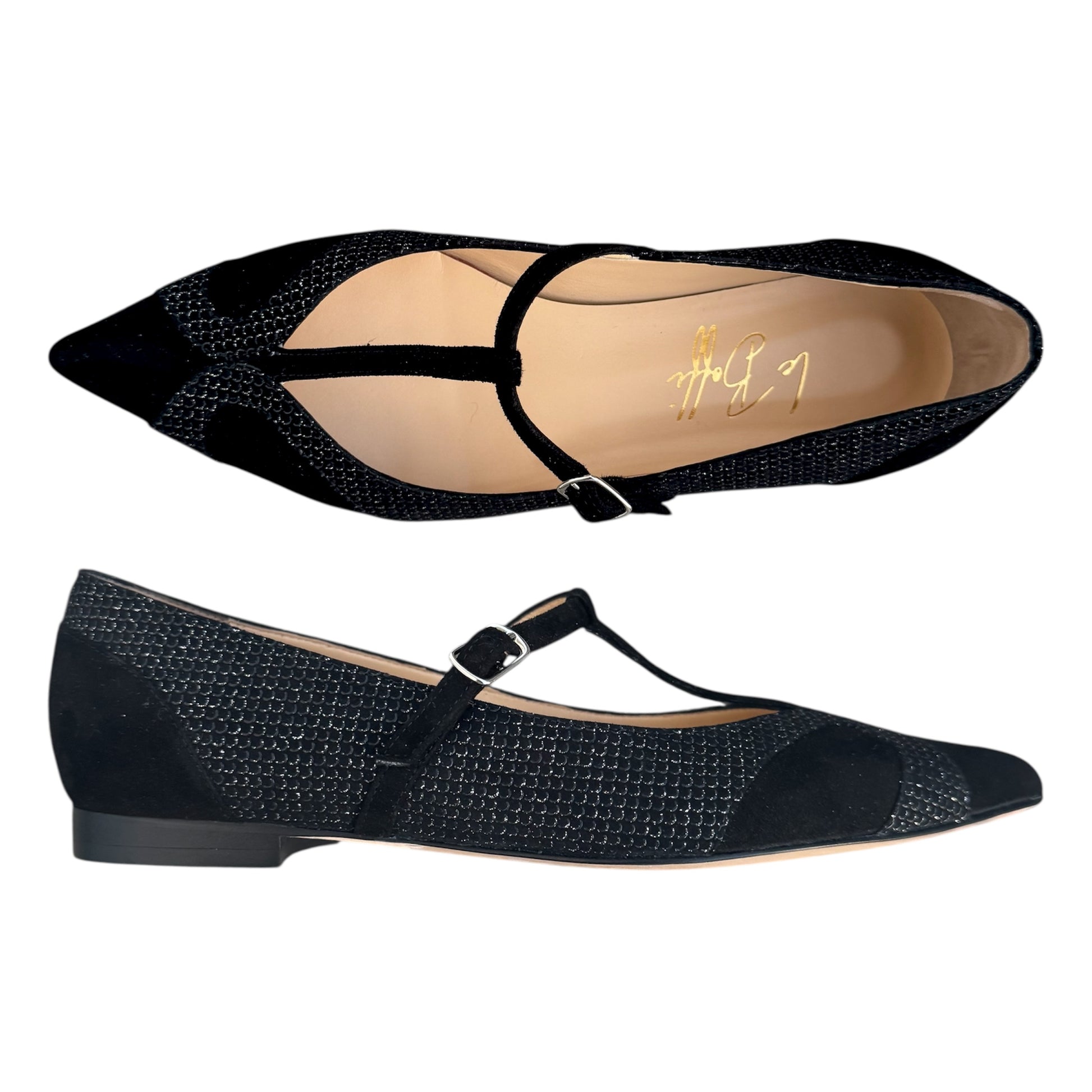 Ballerina in camoscio nero con dettagli argentati