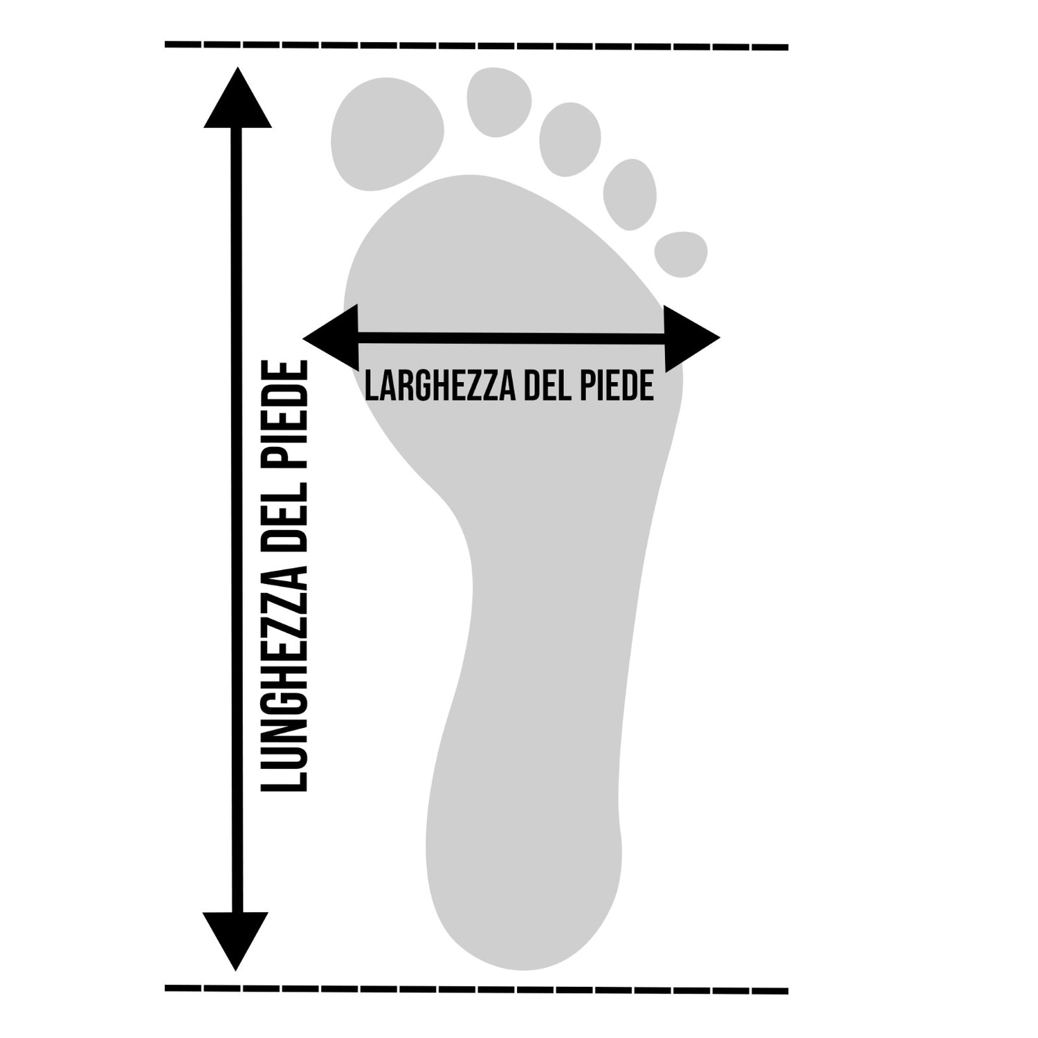 Potresti accorgerti che un piede e' piu lungo dell'altro, e' normale. Usa la misura piu' lunga quando scegli la taglia delle scarpe che vuoi comprare. Nel caso la misura del tuo piede corrisponda a una mezza taglia, seleziona la taglia piu' grande.