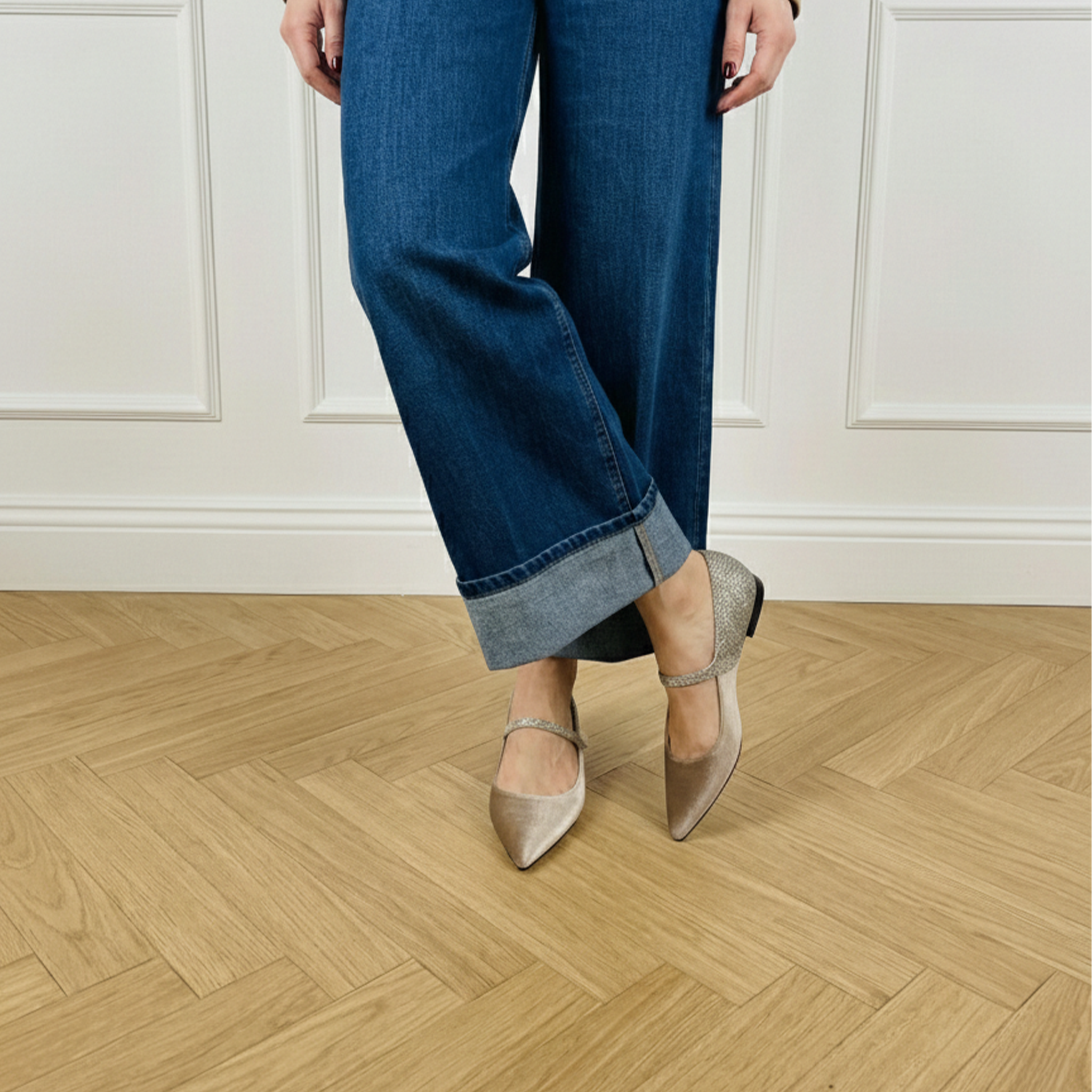 Illumina il tuo stile con questa versione preziosa delle nostre Mary Jane Adele. Pensata per le occasioni speciali o per chi desidera aggiungere una nota di raffinato glamour al quotidiano, questa scarpa gioca magistralmente con i contrasti di luce.