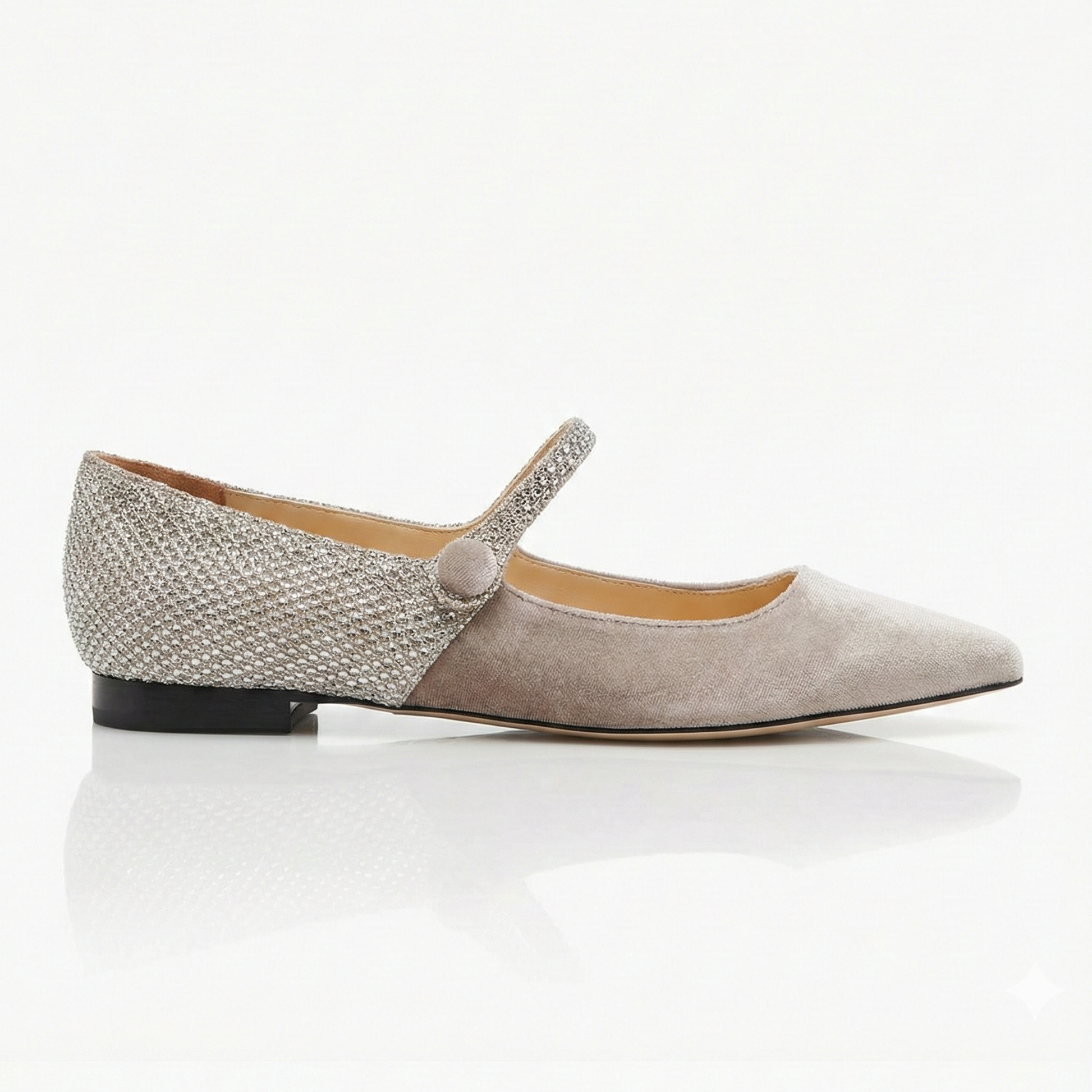 Illumina il tuo stile con questa versione preziosa delle nostre Mary Jane Adele. Pensata per le occasioni speciali o per chi desidera aggiungere una nota di raffinato glamour al quotidiano, questa scarpa gioca magistralmente con i contrasti di luce.