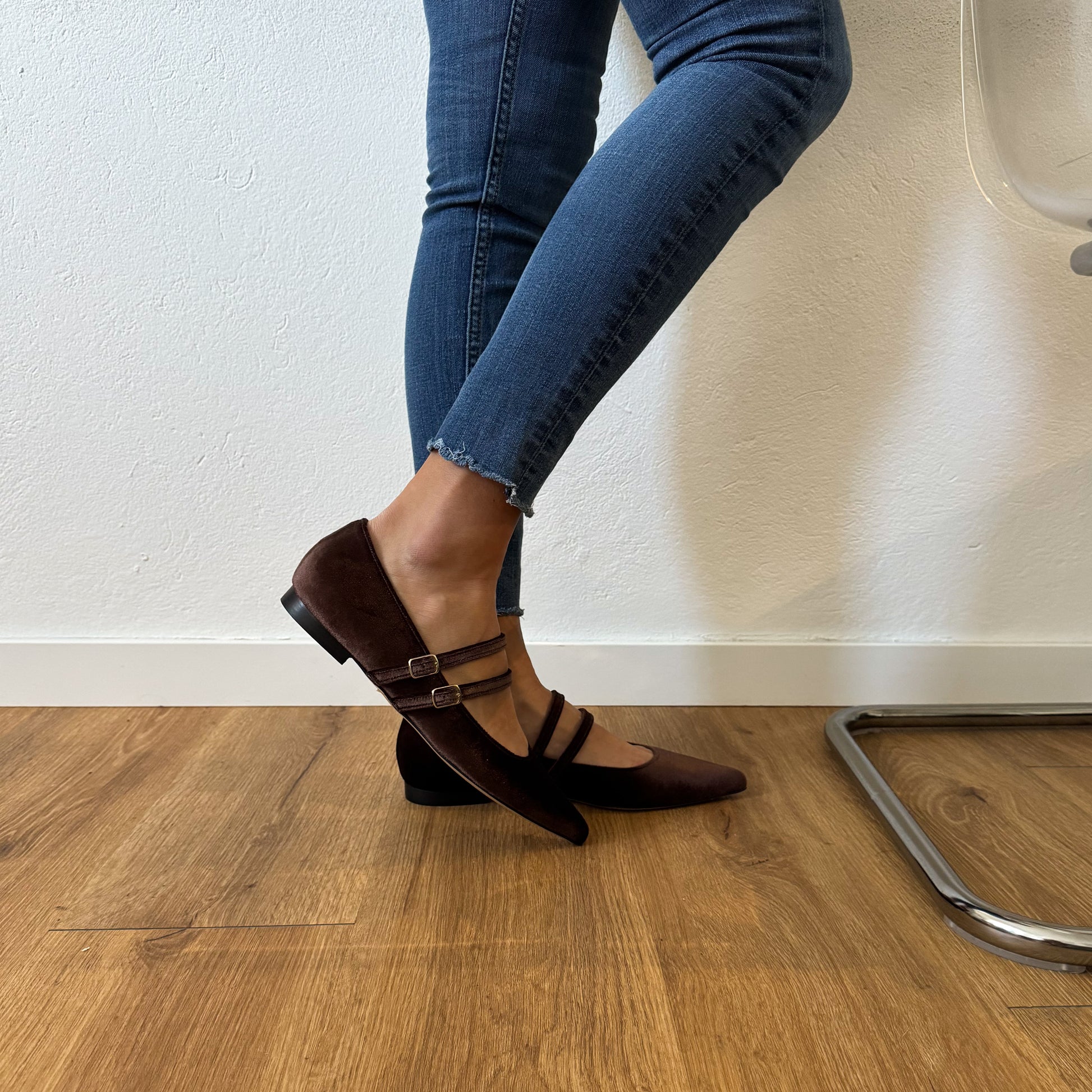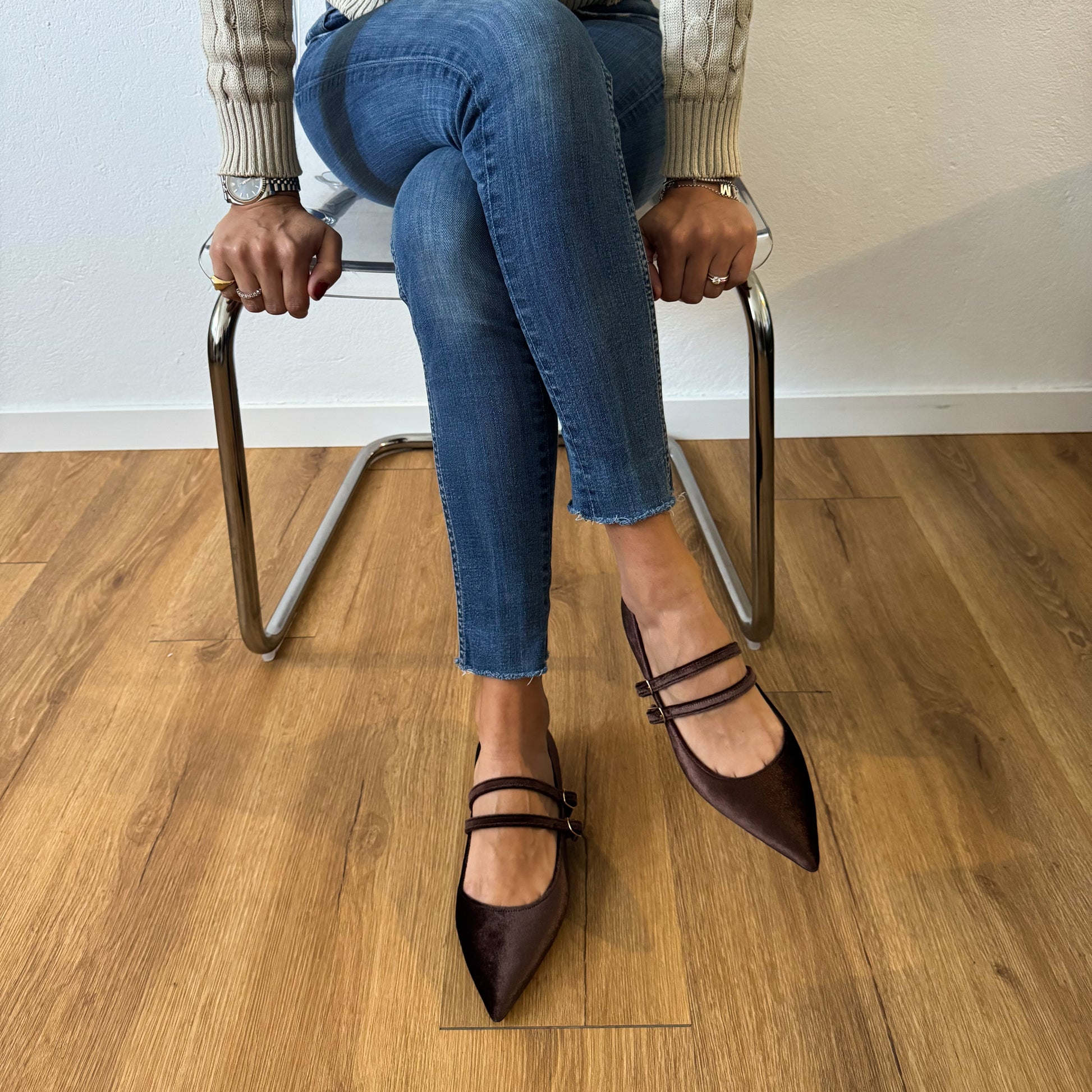 La Elisa Ballerina è uno dei modelli più amati dalle nostre clienti, un grande classico reinterpretato nel velluto color cioccolato, la tonalità di tendenza di questa stagione.