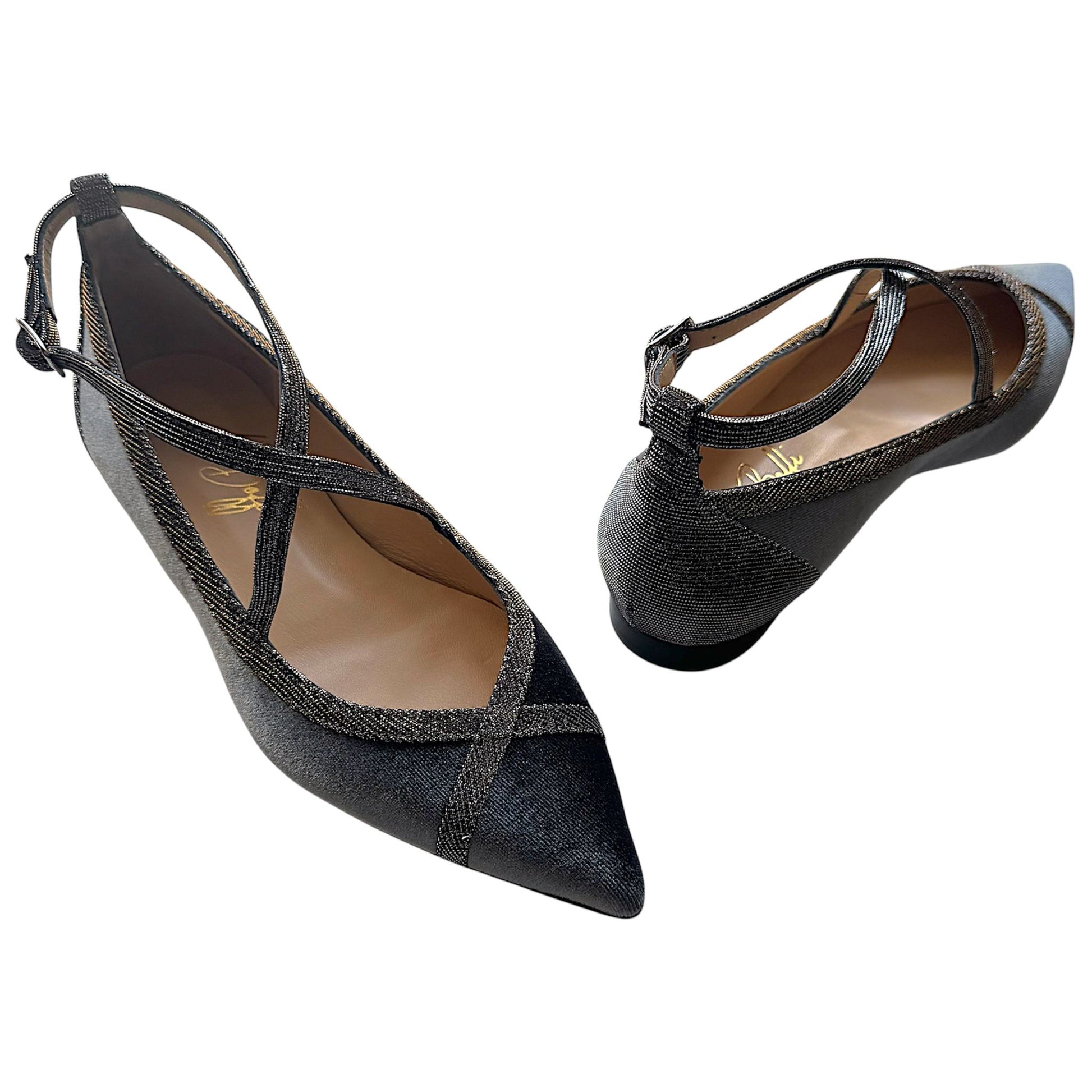 Le ballerine Elisabetta sono l'incarnazione della femminilità e della raffinatezza. Caratterizzate da una punta e un tallone definiti, offrono un design sofisticato e di classe. Il dettaglio distintivo di questo modello è l'incrocio elegante che si sviluppa sulla punta e sul dorso, aggiungendo un tocco moderno al tradizionale stile ballerina.