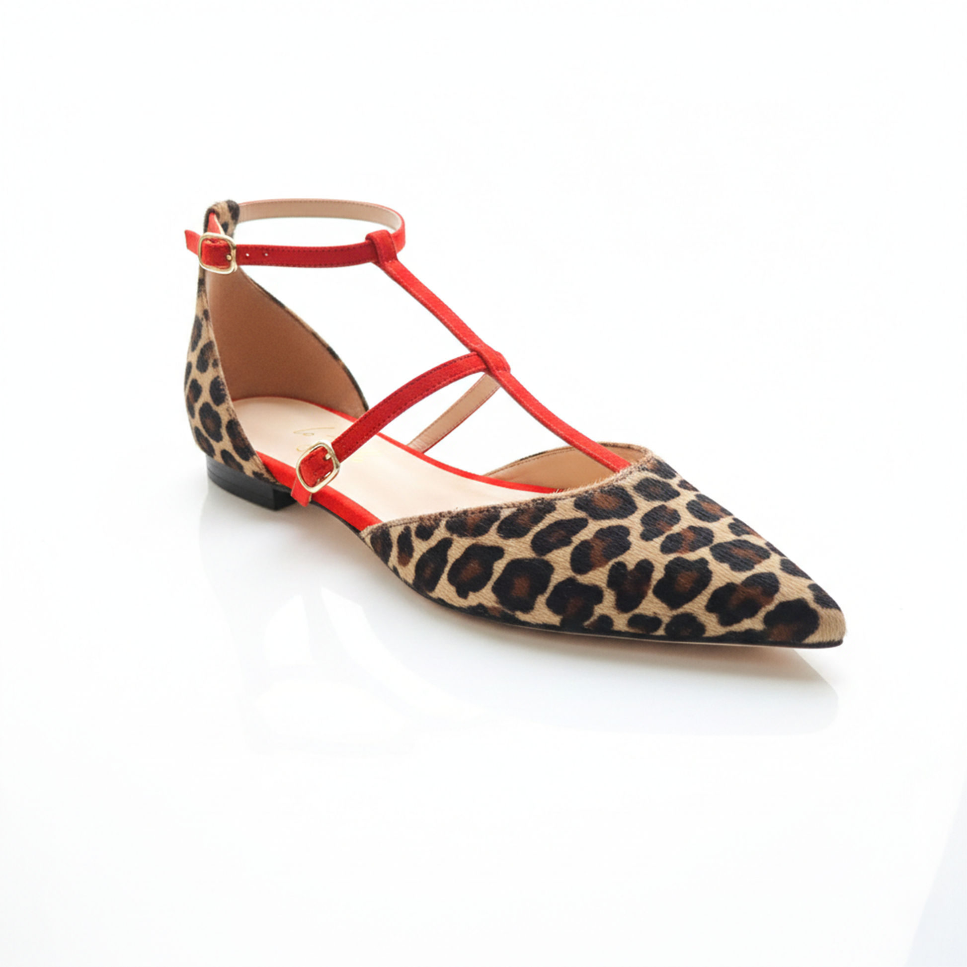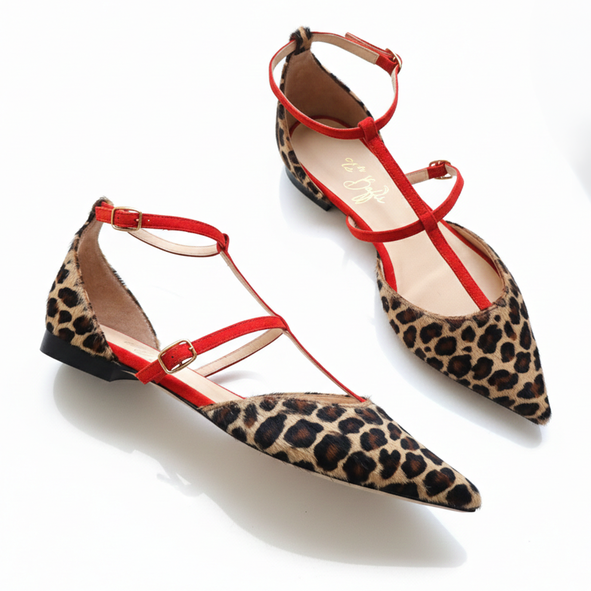 Modello: Ballerina a punta d'Orsay con struttura a T-strap.