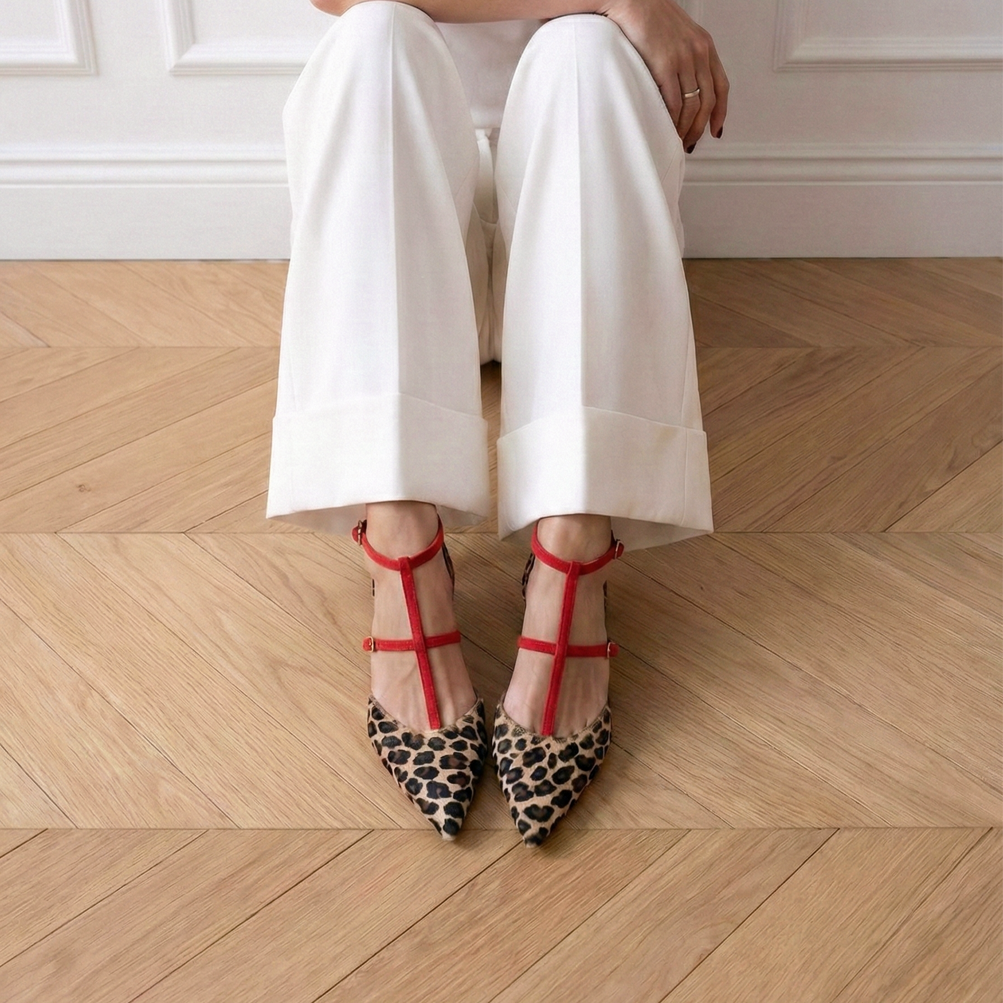 Il consiglio di stile: La Fiammetta è l'accessorio perfetto per dare vita a un "total black" o "total white". Per un look più casual ma ricercato, indossala con un jeans boyfriend e una giacca rossa che richiami i cinturini della scarpa.