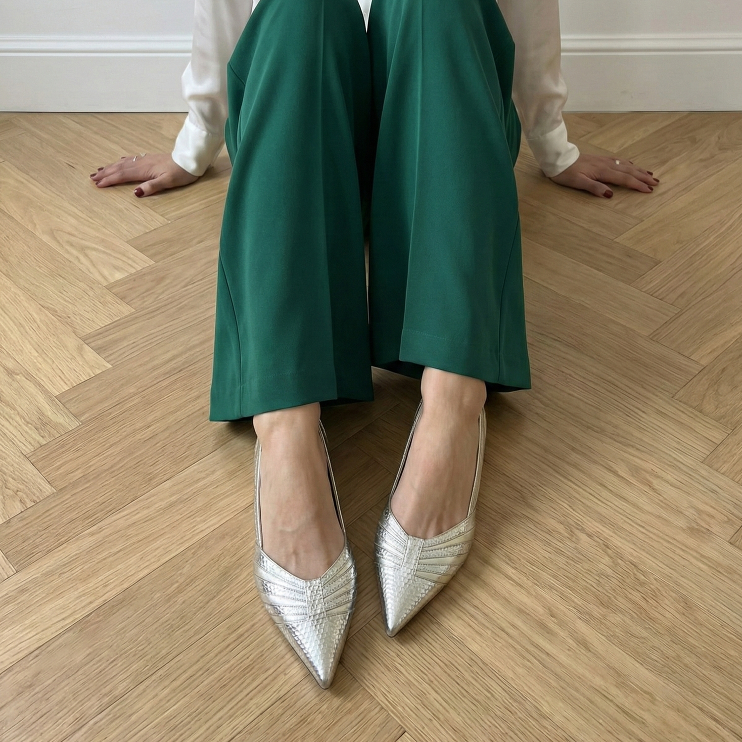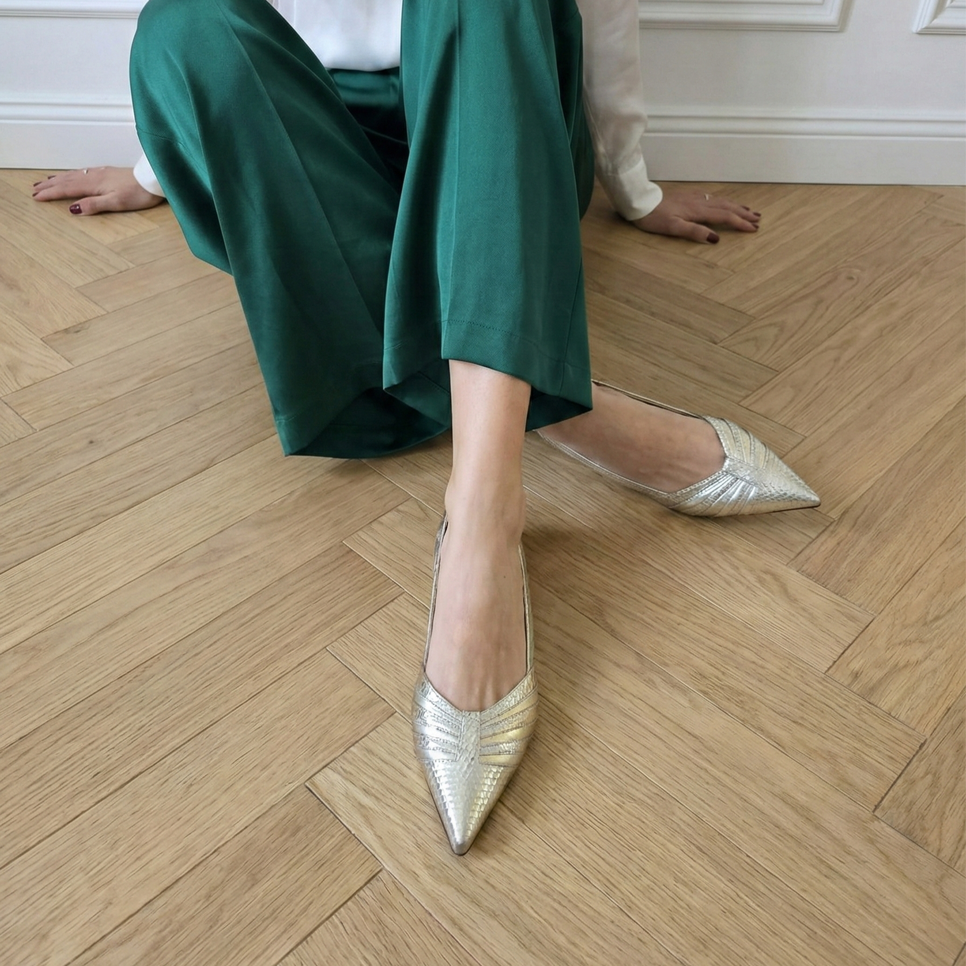 La Giorgia è la scarpa ideale per un look da cerimonia moderno: indossala sotto un pantalone palazzo bianco o un abito a sottoveste in seta grigio perla. Per il tempo libero, provala con un jeans denim chiaro e una t-shirt bianca per un tocco "urban-glam" immediato.