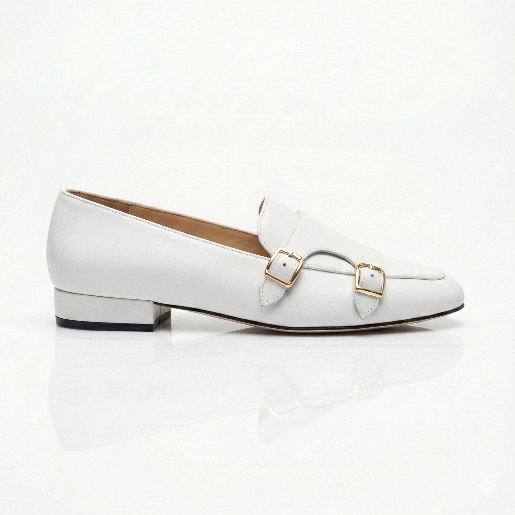 Il mocassino Priscilla è la fusione perfetta di stile classico e dettagli moderni. Con la sua forma a punta tonda, questo modello offre una calzata confortevole senza rinunciare all’eleganza. La doppia fibbia metallica, posta sulla parte superiore, aggiunge un tocco di carattere al design, rendendolo distintivo e sofisticato.